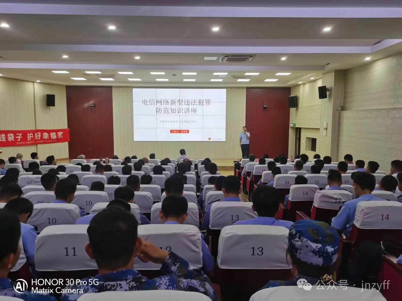 活动中,赵银光团长带来了《我的防非故事》分享。她以自身经历为切入点,深情讲述了自己从曾经的受骗者,到后来觉醒并牵头成立反诈宣传团,致力于帮助更多人远离诈骗陷阱的转变过程。真挚的情感、真实的经历,让在场学子们深受触动,也对诈骗的危害有了更直观、深刻的认识。