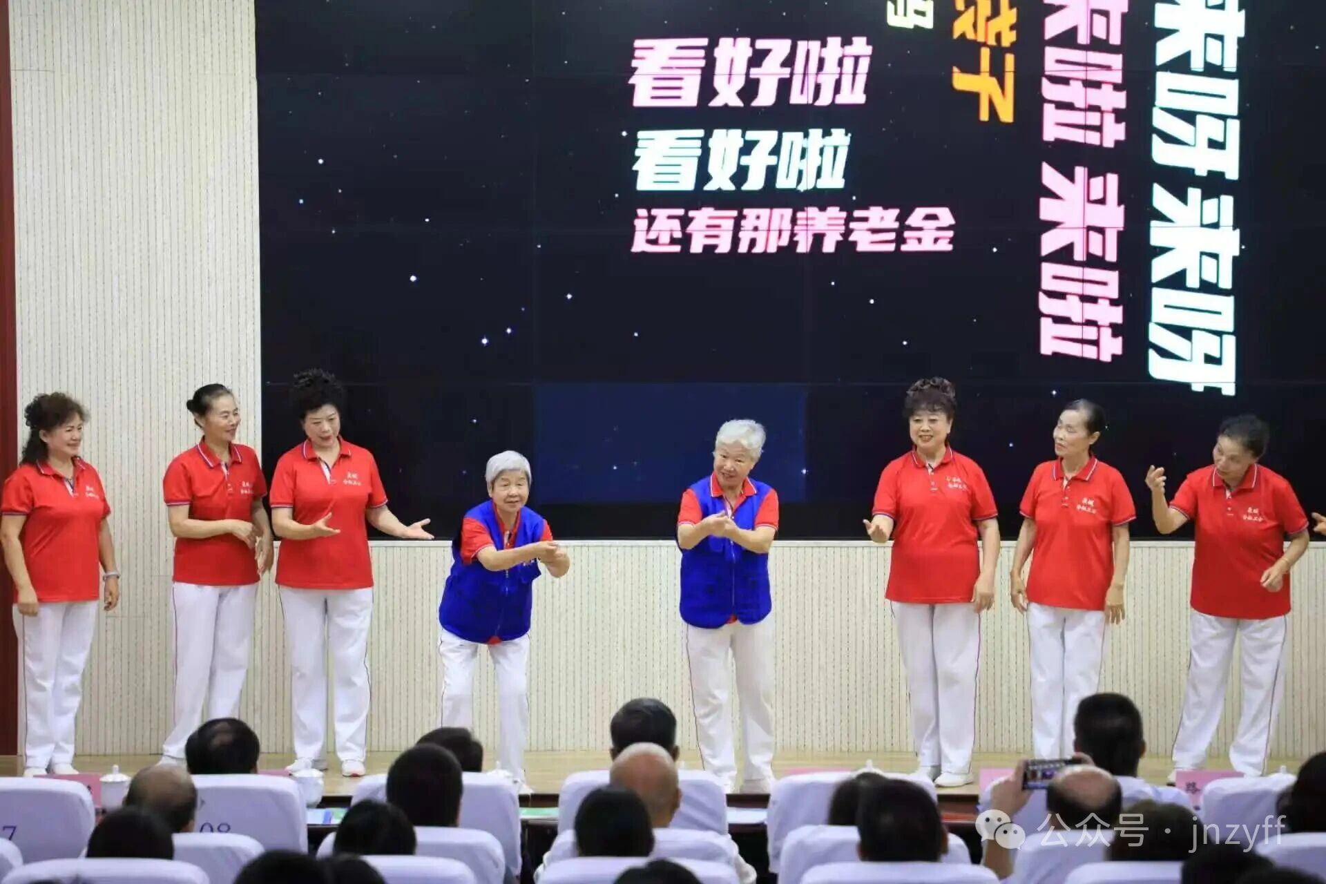 随后,“反诈奶奶们” 轮番登场,献上了精心准备的反诈节目。她们用通俗易懂、生动有趣的表演形式,将防非反诈知识融入其中,让学子们在轻松愉快的氛围中学习和掌握识别诈骗、防范诈骗的技巧。同时,“反诈奶奶们” 还向学校赠送了寓意着 “筑牢防诈防线” 的书法作品,传递出共同守护校园安全的美好愿景。